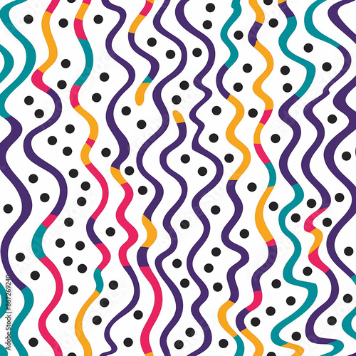 Rendered photos of colorful small and bid dots seamless pattern line art made with generative AI