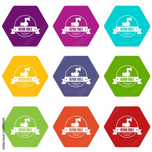 Renovation tool icons 9 set coloful isolated on white for web