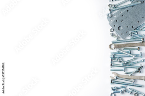Repair tool. Bolts and wrenches. White background. Copy space