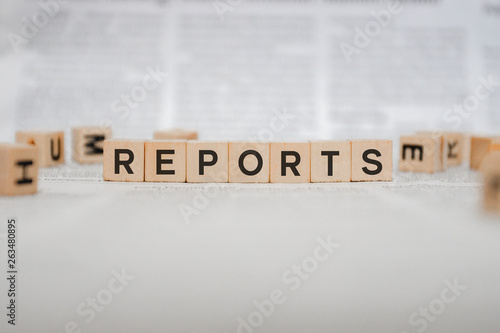 Reports Word Written In Wooden Cube - Newspaper