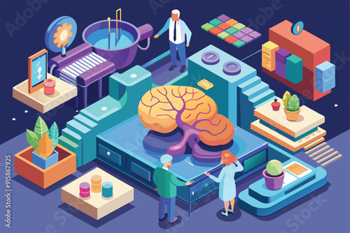 alzheimer, research, laboratory, isometric, illustration, brain, collaboration, scientist, modern, colourful, memory, health care, education, interactive, model, support, therapy, study, analysis, exploration, plant, tool, equipment, innovative, design, creative, visualisation, patient, symptom, neuroscience, teamwork, communication, wellness, treatment, cognition, learning, awareness, development, strategy, care, challenge, environment, resource, activity