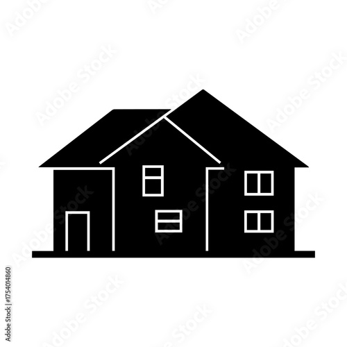 house, home, dwelling, building, property, residential, architecture, icon, silhouette, simple, modern, structure, housing, estate, black, white, outline, design, symbol, front, facades, roof, door, window, family, living, ownership, investment, business, development, abode, flat, row house