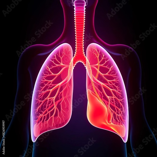 Respiratory system, lungs and airways for gas exchange, biology, trachea
