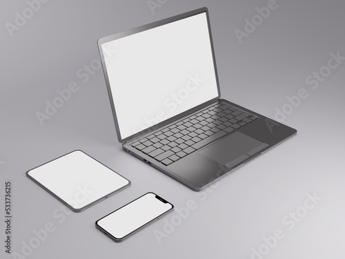 Responsive website presentation mockup with 3d rendering. Multidevice