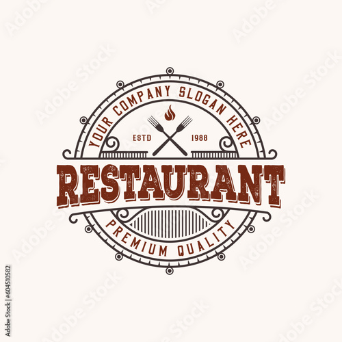 Restaurant - Logo icon of Barbecue, Grill and Bar with fire logo template with vintage style logo