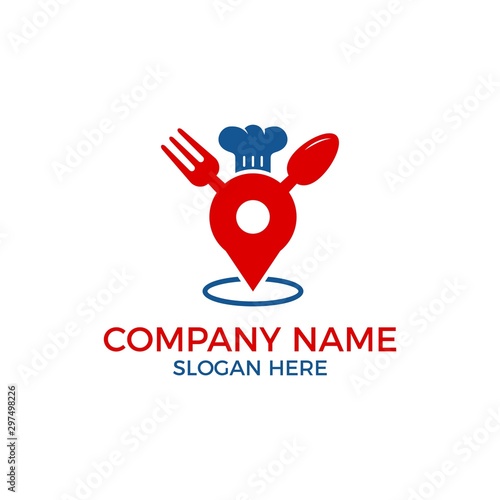 Restaurant logo with location, fork and spoon icon vector. Logo concept for restaurant, logo template
