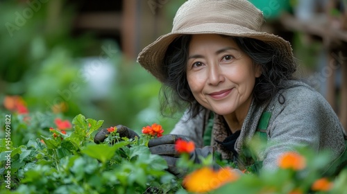 Retired people happily working in garden, growing vegetables and flowers, enjoying healthy lifestyle and outdoor hobby during peaceful retirement.