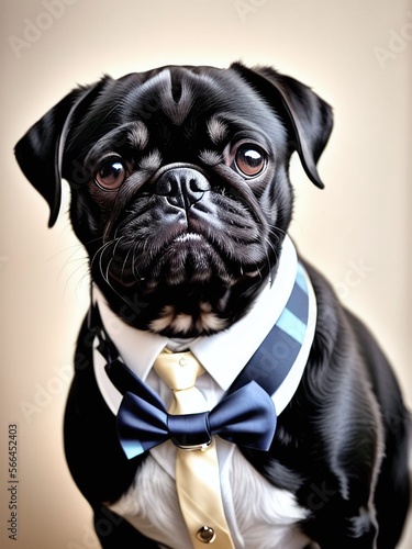 Retrato realista de un perro pug vestido con un esmoquin, IA Generativa