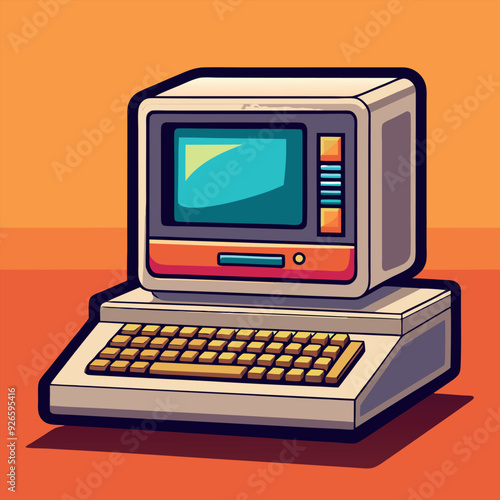 retro, computer, vector, design, vintage, technology, old-fashioned, classic, nostalgic, personal computer, 80s, 90s, minimal, modern, illustration, graphic, art, digital, creative, abstract, silhouette, flat, hardware, screen, keyboard, monitor, computing, analog, electronic, detailed
