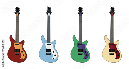 Retro electric colorful guitar on the white background, a vector vintage illustration set