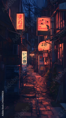 Retro Tokyo alley ambiance at night.