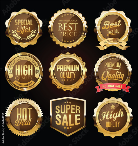 badge, gold, gold, vector, label, badge, medal, design, seal, collection, quality, emblem, symbol, set, luxury, banner, sticker, ribbon, guarantee, label, shield, signs, icon, stamp, illustration, blank, certificate, sale, background, glossy, vintage, premium, laurel, best, chaplet, royals, retro, circle, ribbon, plate, banner, element, coat, business, element, metal, buttons, arm, crest
