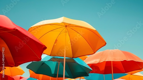 beach, umbrella, parasol, sun, shade, summer, ocean, vacation, coastal, colourful, vibrant, primary colours, retro, vintage, bold, overlapping, circle, pattern, texture, geometric, abstract, minimalist, relaxation