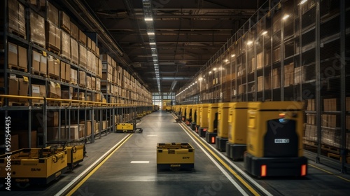 Revolutionary Smart Warehouse with AGVs (Automated Guided Vehicles) Enhancing Efficiency and Productivity in Logistics and Transportat7ion - High-Quality Stock Image for Future-Focused Businesses