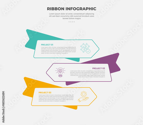 ribbon base shape infographic outline style with 3 point template with flat style with arrow box opposite direction for slide presentation
