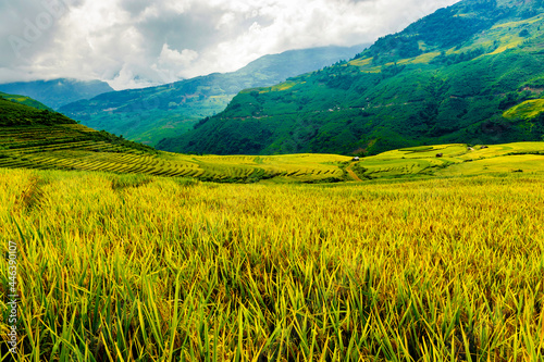 Rice fields on terraced of Y Ty, Bat Xat, Lao Cai, Viet Nam. Rice fields prepare the harvest at Northwest Vietnam.Vietnam landscapes.