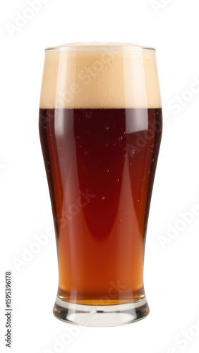 Rich amber beer in tall glass, topped with creamy foam, exuding refreshing and inviting appearance. Perfect for social gatherings