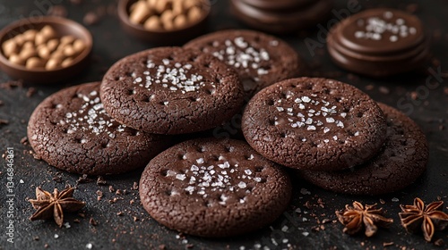 Rich Chocolate Cookies with Sea Salt and Spices on Dark Background for Baking and Dessert Themes