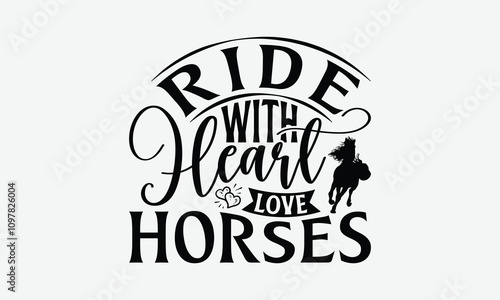 Ride With Heart Love Horses - Horses T-Shirt Design, Illustration Written Vector T Shirt Design, Calligraphy Graphic Design.