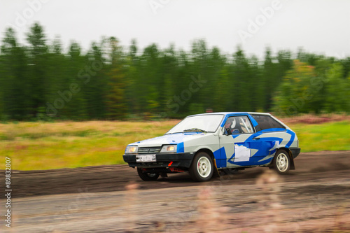 sport, racing, car, speed, hood, tire, wheel, cabin, pilot, steering wheel, bumper, metal, glasses, door, auto racing, helmet, photo, light, background, colours, light, roof, interior, green, black, white, blue, bright, day, competition, road, dirtied, land