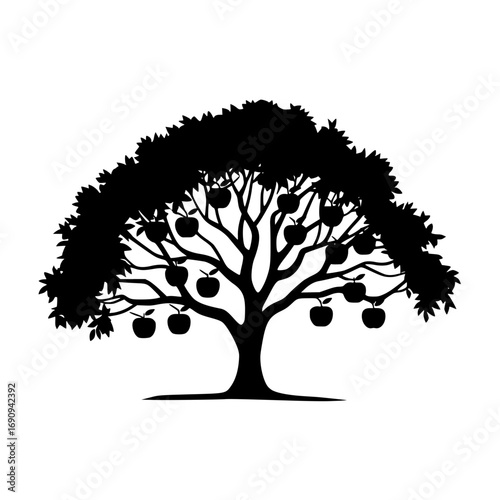 apple tree, fruit tree, harvest, autumn, nature, organic, food, healthy eating, agriculture, fruit farm, seasonal, growth, abundance, silhouette, black-and-white, graphic, design element, produce, tree, fresh, ripe, garden, farm, natural, healthy, fruit