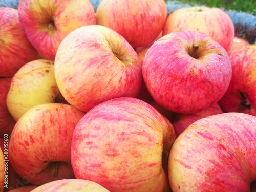 Ripe fresh apples in a basket. Autumn farm harvest.
