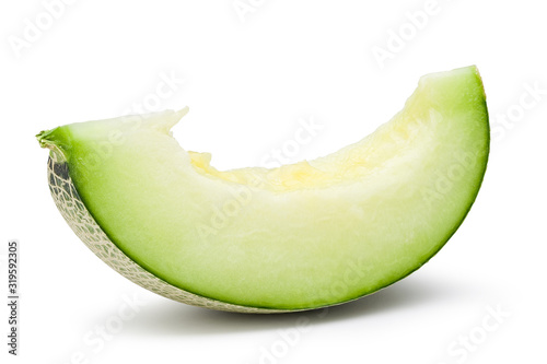 Ripe green melon slice isolated on white with clipping path.
