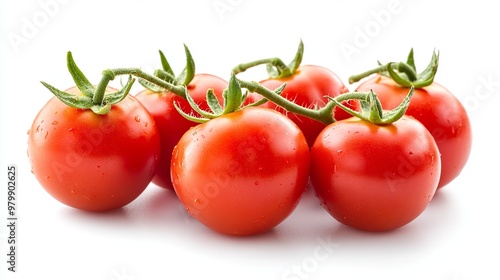 Ripe, isolated tomatoes on a white backdrop. Whole, organic tomatoes offer a burst of freshness. A delectable, nutritious addition to salads and seasonal dishes.