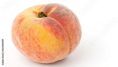 peach, fruit, ripe, fresh, single, whole, yellow, red, skin, fuzzy, juicy, sweet, dessert, healthy, eating, food, produce, agriculture, vitamin, summer, delicious, organic, botany, photo, studio, shot, white, background, macro, closeup, isolated, object, texture, colours, vibrant, natural, dietary, nourishment, antioxidant, oblong, stem, stone, pip, flesh