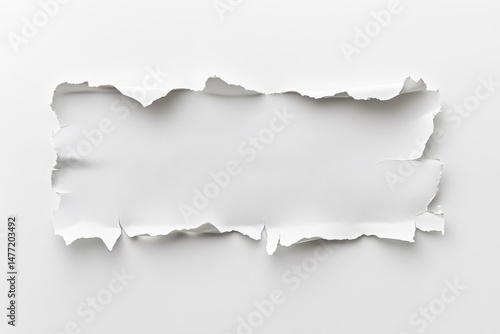 ripped, paper, white, blank, empty, space, hole, torn, texture, surface, background, graphic, design, element, poster, image, art, abstract, simple, modern, minimalist, clean, flat, top, view, horizontal, rectangle, fragment, irregular, edge, crease, tear, pattern, photo, studio, light, smooth, copy, text, place, format, composition, template, editable, illustration, vector, digital, print