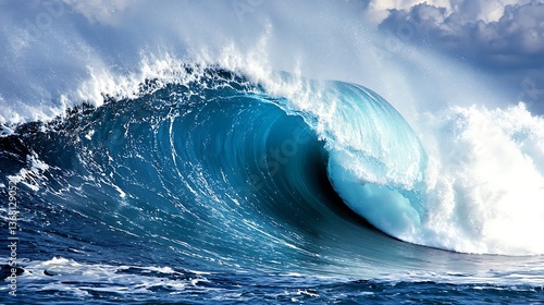 Rising ocean wave power coastal shore nature photography dramatic scene close-up energy force