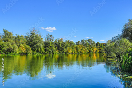 water, landscape, sky, nature, river, summer, blue, tree, green, tree, cloud, outdoors, beautiful, panorama, cloud, grass, scene, hungary