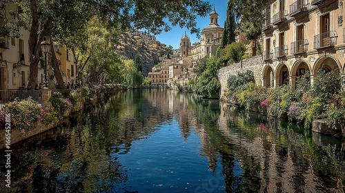 river, water, building, architecture, tree, town, city, landscape, sky, blue, green, foliage, nature, travel, tour tourism, europa, canal, urban, outdoors, scenic, idylli, peaceful, calm, serene, sunny, summer, daylight, bridge, stone, historic, old, ancient, mediterranean, european, waterway, embankment, riverside, vegetation, facades, exterior
