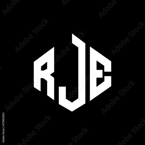 RJE letter logo design with polygon shape. RJE polygon and cube shape logo design. RJE hexagon vector logo template white and black colors. RJE monogram, business and real estate logo.
