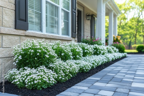 road, flower, pot, street, bed, white flower, ground cover, pollinator, compact, spreading, plant, box, modern, city, floristry, urban, flower, blooming, pot, summer, concrete, box, flowerpot, garden, background, landscape, floral, beauty, eatery, park, generative, ai, illustration