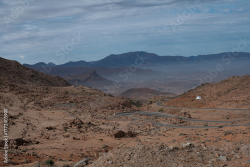 desert, landscape, mountain, sky, mountain, rock, nature, travel, sand, stone, hill, canyon, rock, outdoors, view, scenic, land, arid, island, north africa, morocco, explore, earth, dune, mist, haze, blue
