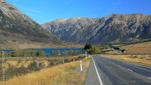 new zealand, canterbury, road, mountain, landscape, travel, highway, nature, mountain, summer, hill, view, scenery, journey, scenic, vacation, outdoors, vale, country, motoring, touring, skyline, ridge, south island, route, mountain chain, lake, isolated, rural, driving, blue skies, cloudless, no people