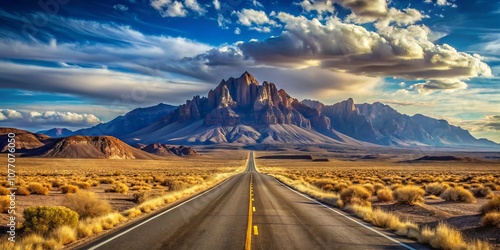 Road to the Mountain Peak, Desert Landscape, Road Trip ,desert, mountain