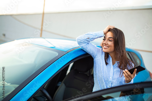 car, woman, mobile phone, parking, phone, city, outdoors, summer, photo, portability, smiling, wireless technology, people, professional occupation, travel, casual clothes, cheerful, media, traffic, adult, adults only, beautiful woman, business, connection, female, horizontal, cyberspace, lifestyle, moldova, one person, reading, relaxation, success, technology, toothy smile, transportation