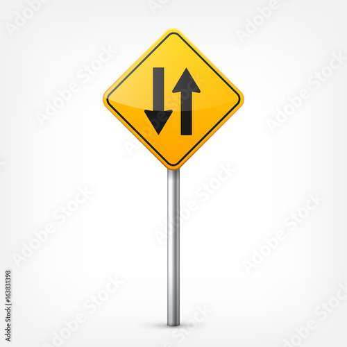 Road yellow signs collection isolated on white background. Road traffic control.Lane usage.Stop and yield. Regulatory signs. Curves and turns.