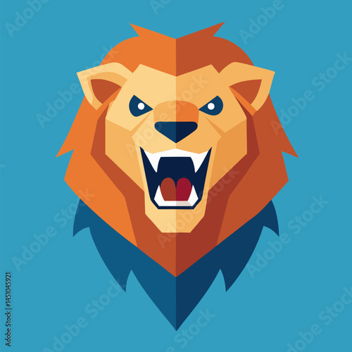 Roaring Lion: A fierce, geometric illustration of a lion, capturing its powerful presence and iconic roar against a bold, modern background.