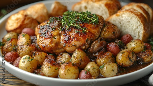 potato, grape, thyme, dinner, lunch, roasted, poultry, side dish, bread, baked, meal, cookery, food, cooking, receipe, delicious, homemade, healthy, easy, simple, epicure, main course, protein, vegetable, fruit, herb, spice, sauce, gravy