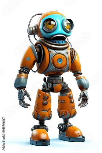 Robot cartoon toy white background.