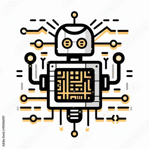 Robot Illustration with Lines and Circuitry