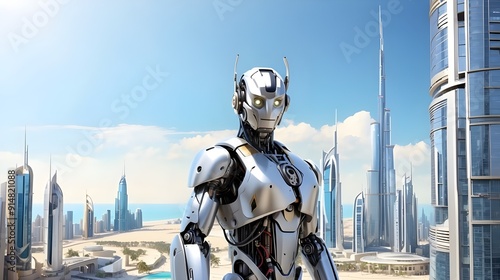 robot in front of buildings