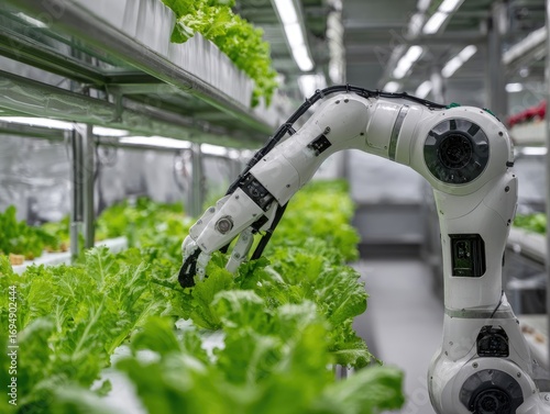robot, arm, harvesting, lettuce, farm, agriculture, technology, automated, future, growth, vertical, farming, crop, plant, produce, healthy, food, sustainable, precision, efficiency, innovation, system, modern, green, white, bright, clean, futuristic, precise, controlled, environment, growing, fresh, light, robotic, industry, efficient