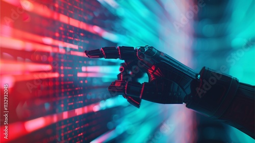 ai, technology, futuristic, datum, digital, cyberspace, network, innovation, science, automation, code, programming, interface, screen, display, digital artwork, abstract, glowing, neon, vibrant, colours, red, blue, dark, closeup, detail, intricate, complex, modern, advanced, high technology