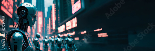Robots under the influence of artificial intelligence are taking over the world. War of AI robots. Expansion of artificial intelligence.