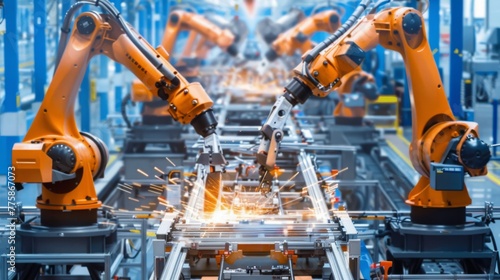 Robots Working on Conveyor Belt in Factory