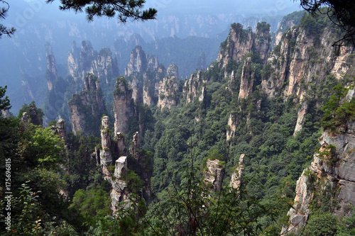 mountain, gorge, sandstone, peak, high, tall, mountain chain, hill, rock formation, cloudy sky, national park, forest, nature reserve, china, chinese, asia, unesco, world heritage, lookout, wall